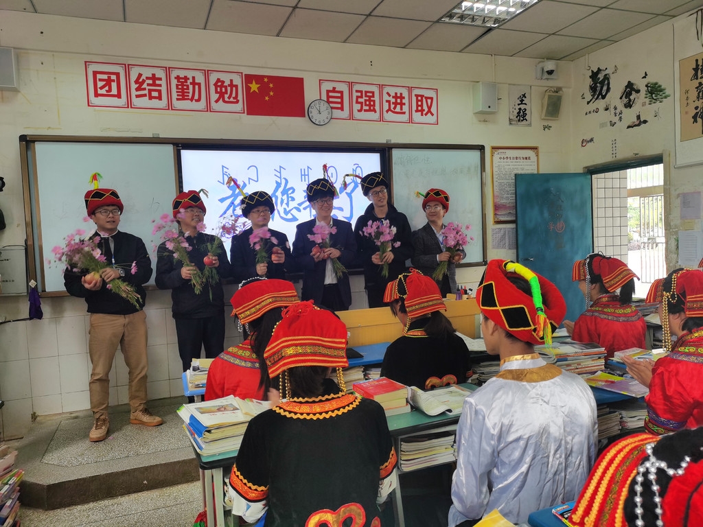 “老师辛苦了!”教师节前一天,汉语、彝语祝福就上了“泸州班”(高中)教室的投影墙。彝族学生们也早早穿着民族服饰,为6名老师献上早上采摘的格桑花和苹果。