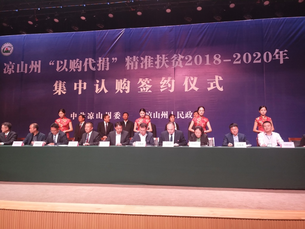 近年来,广汉市紧紧围绕金阳县实际,创新“1+3”消费扶贫模式,即:立足“三年一个亿”以购代捐承诺,拓展开展“特色专柜、线下展销和线上带货”,助推金阳县如期脱贫摘帽。