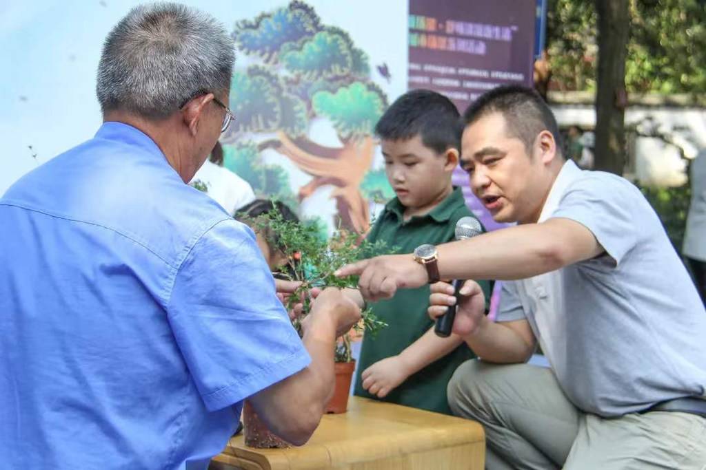 百花潭公园为所有到来的教师赠送精美盆景,老师带着孩子们现场接受了川派盆景大师的盆景技能培训,亲身体验盆景制作和造型。