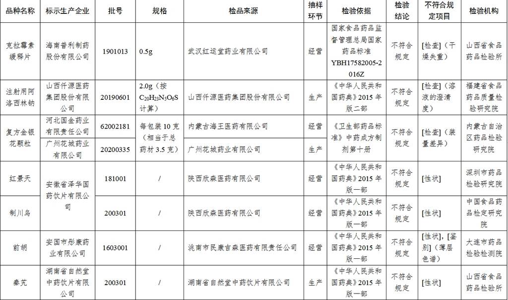 记者了解到,对上述不符合规定药品,药品监督管理部门已要求相关企业和单位采取暂停销售使用、召回等风险控制措施,对不符合规定原因开展调查并切实进行整改。
