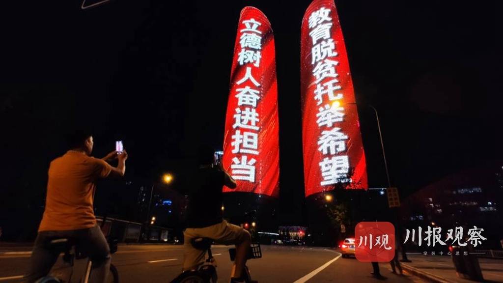 当晚,除了成都,全省各市(州)、县(市、区)的地标建筑,地域内带有电子显示屏的建筑或单位,以及各高校都参与到“为教师亮灯”活动中。