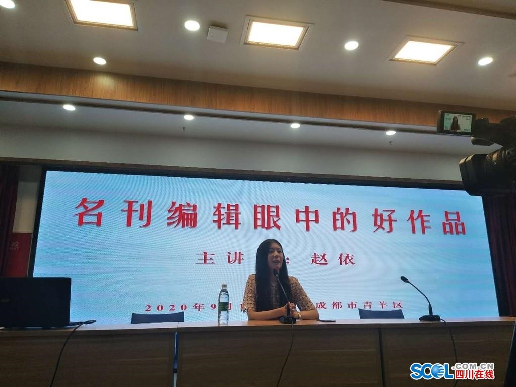9月10日,四川省作协“红色文学轻骑兵•百场讲座进基层”暨四川省图书馆“21市州讲座联盟”走进成都市青羊区。青年作家、评论家,《中国作家》文学编辑部副主任赵依做客成都市青羊文化艺术中心,以《名刊编辑眼中的好作品》为题,和文学爱好者分享文学“好作品”。