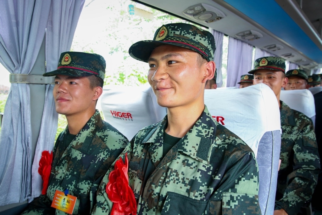 一张张稚嫩的脸庞洋溢着青春的朝气和活力,胸前的红花与身上的橄榄绿相得益彰。“紧张、憧憬也很兴奋,想赶快加入到部队这个大家庭,不断磨砺自己、锤炼本领……” 刚走下列车,21岁的简新力激动地说。