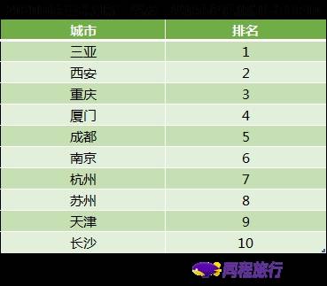 《报告》预测,三亚、西安、重庆、厦门、成都、南京、杭州、苏州、天津、长沙将是国庆黄金周期间酒店预订量较大的新一线及二线城市。