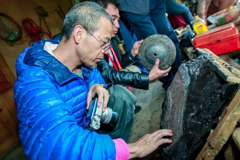 “河坡”即霍尔部落迁徙之地,以金属手工技艺为主体的河坡有“手工艺之乡”的美誉,有造型特殊、工艺精湛和适用美观等特点,当今其仍与生产、生活紧密结合。“白玉藏刀”纳入国家级非遗保护项目,科考团专家对有850余年生产传承史的刀具仔细观察。