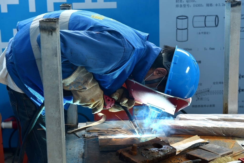 电焊作业竞赛区,选手们先是将2截钢筒的衔接处磨光,电焊选手戴上电焊防护面罩,一点点焊接。敲掉外面的防护层,赫然出现鱼鳞状的焊纹。参加过武汉雷神山医院建设的中建三局一公司安装分公司工长李清平正在带着团队焊接作业。今年年初,他不顾个人安危,前往武汉参加雷神山医院的建设。李清平深有感触说:“12天就建成一座现代化的传染病防治医院,是中国速度的生动体现,也是我国现代建筑工人职业操作技能和综合素质的全面体现”。