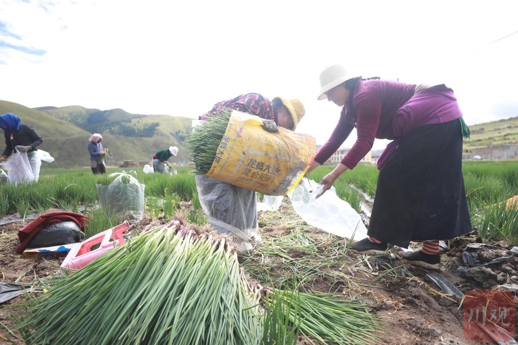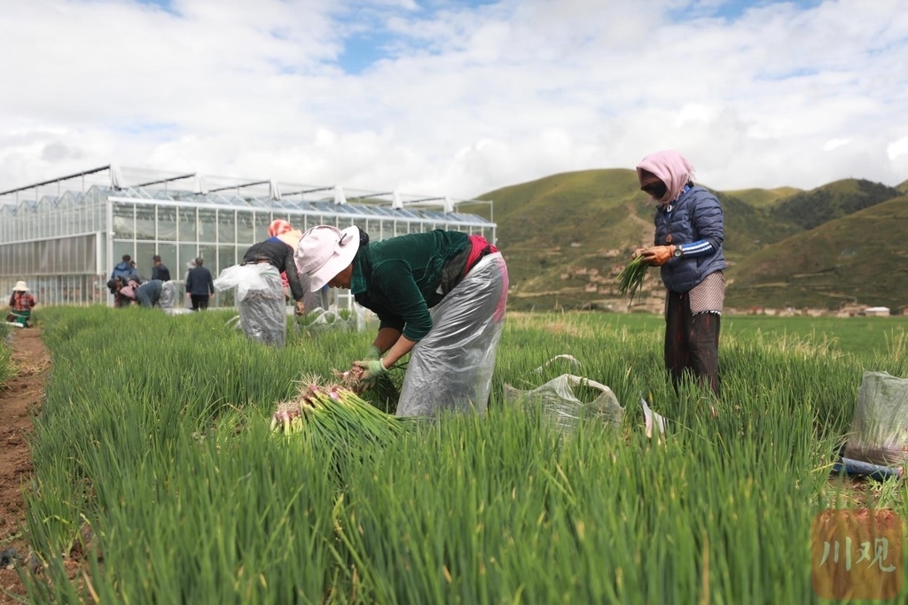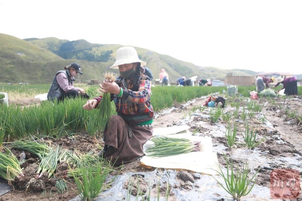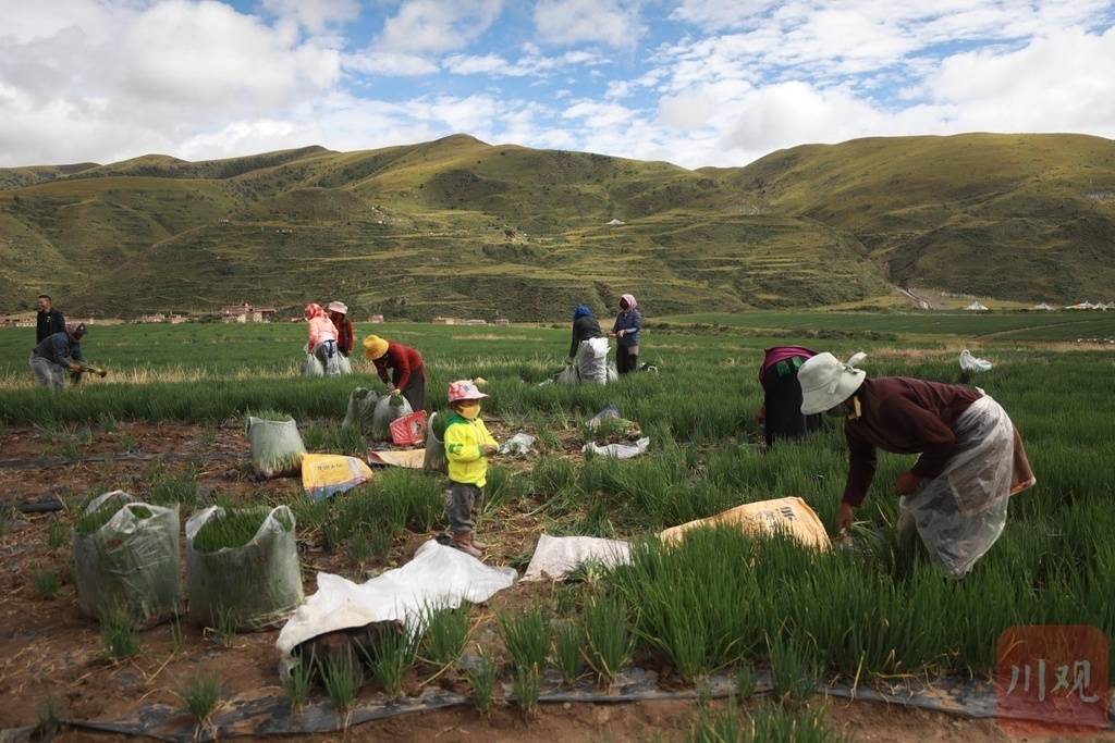 四川在线消息(周琳 记者 徐中成 陈露耘 刘春华 向宇)9月11日,切洛玛村雨过天睛。一片郁郁葱葱的高原香葱地里,笑声、热闹声不断,王休杰和10来个村民正在扯香葱,“葱长得好,可以用来炒回锅肉、鸡蛋啦。”