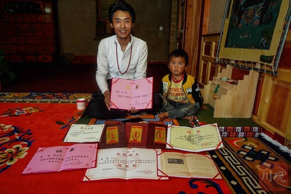 “我从来没有想过,自己会成为一名画师。”更滚说,他是壤塘县尕多乡尕多村牧民家出生的孩子,从小帮家里人放牧。虽然很喜欢读书,还曾偷偷跑到学校去看别人怎么学习,但是因为家庭条件限制,一直没有获得上学的机会。16岁那年,他获得家人支持,到当地唐卡传习所学习画唐卡,命运从此改变。