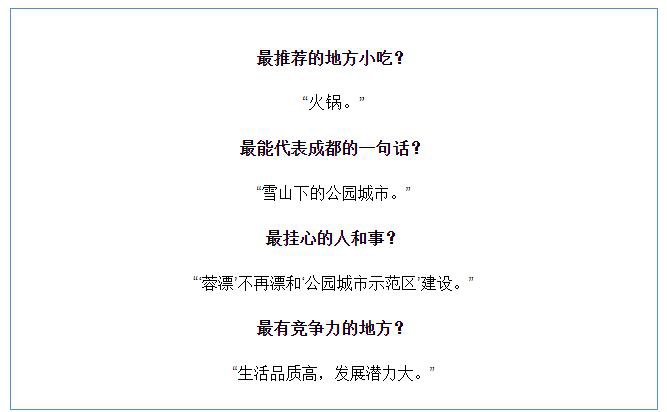 在回答央视新闻《相对论》“答题板”环节提问时,四川省委常委、成都市委书记范锐平这样为成都代言。