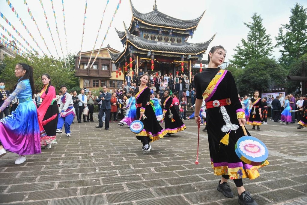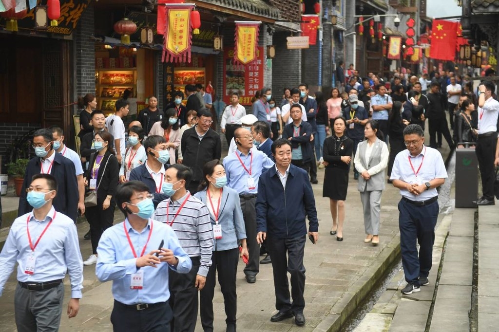 在水磨镇,考察团一行先后前往禅寿老街、大爱无疆广场、水磨社区、和谐广场、水磨羌城等地,了解当地民族特色村寨打造、民族传统文化发掘传承、民族特色产品开发推广、党建引领民族团结进步创建等情况。