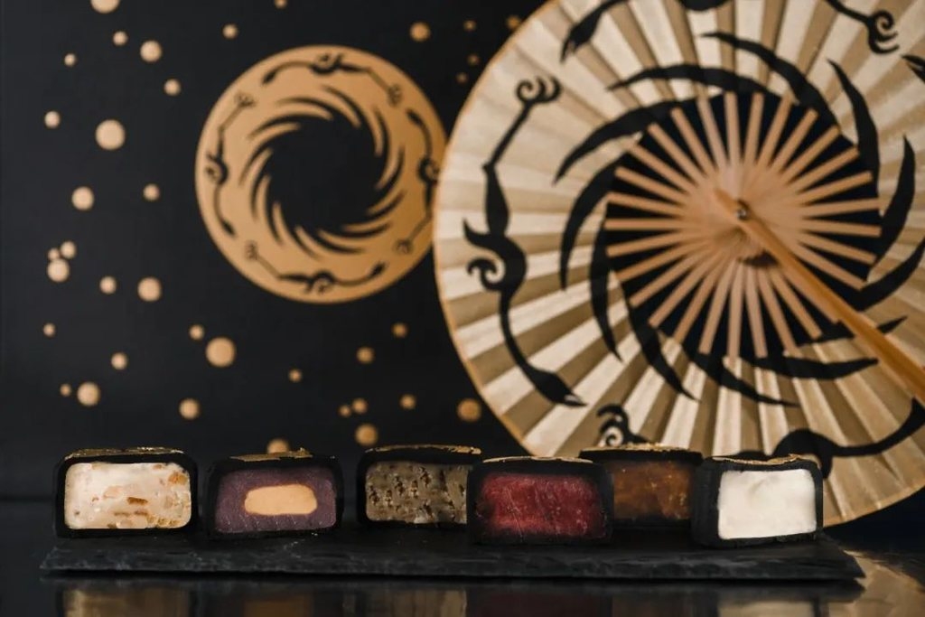 月饼饼皮,则采用以口感细腻而著称的日式和果子配方,将白芸豆沙配以蛋黄、奶油等材料,先蒸后烘多个繁复步骤,调配制成桃山皮,爽口不腻。