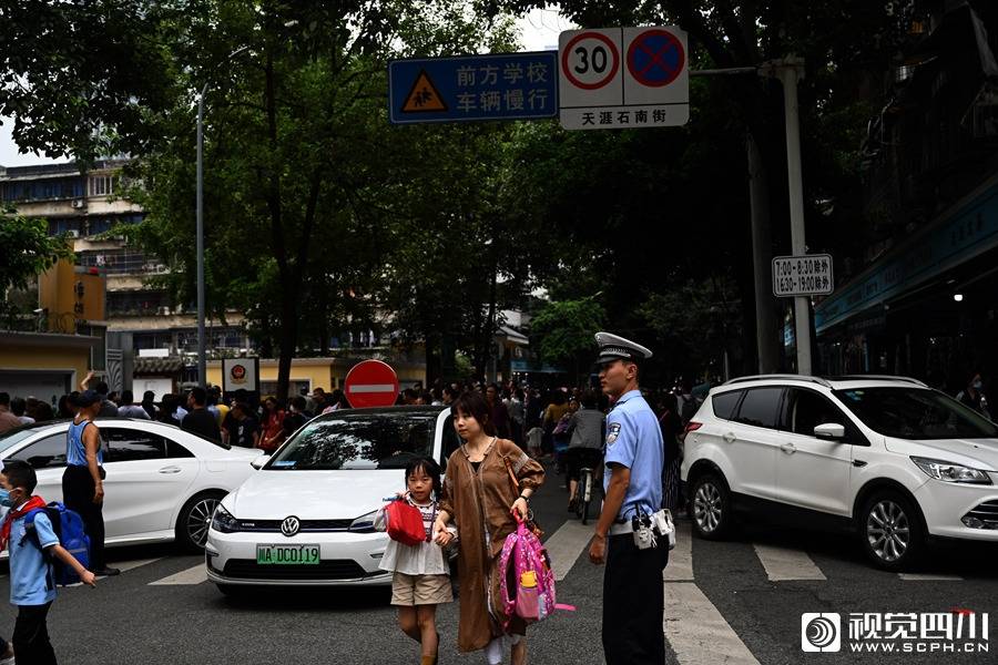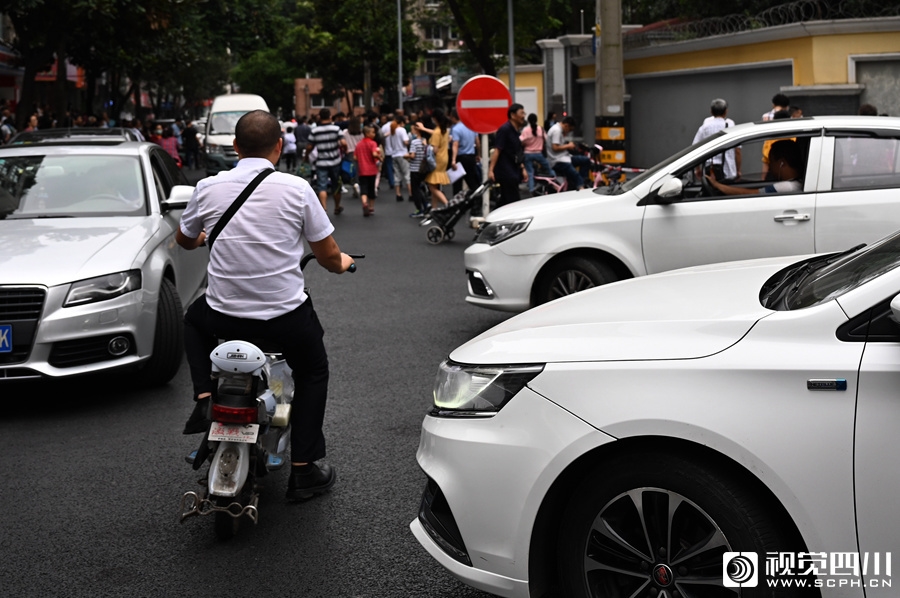 下午放学时段,成都天涯石小学放学时段,接孩子的车辆一度将天涯石东街堵死。