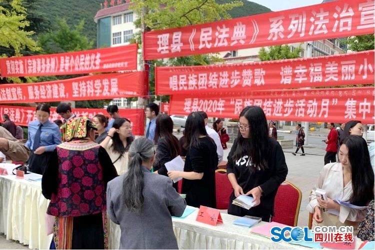 活动期间,为了让大家更好的学习了解民法知识,理县总工会还向前来参加活动的观众发放普法宣传资料,真正做到全民参与,全民学习。
