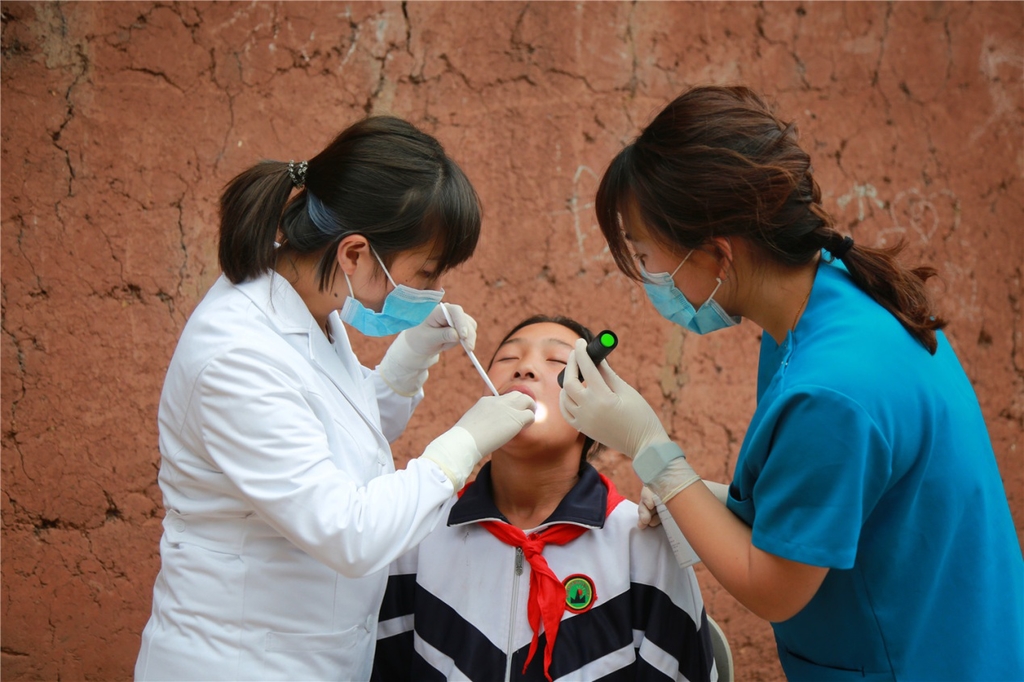 趁着中午孩子们吃营养午餐的机会,世家口腔儿童口腔科主治医师赵璐一边主动跟孩子们聊天,一边注意观察孩子的饭食和牙健康状况。"有喜有忧,可喜的是和吃惯了精细食物的城市儿童相比,山里孩子平时的饮食中有较多的粗粮、蔬菜等,这对颌骨和咬肌发育是有好处的,也减少了牙周病的发生几率;可忧的是,可能跟母亲怀孕时营养状况有关,很多孩子的牙质、牙床发育情况都不算很理想,加上平时没有好好刷牙,很多都有龋齿等牙病。"