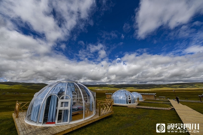 “除了7座星空帐篷,我们还特别建了10多座木质结构、传统藏式风格的草原小木屋。”奇美伦珠告诉记者,所有房屋、包括草原间的步行廊道都是建在20至50厘米的地面上,用钢结构架起来,避免对草原造成破坏,同时,“埋在地下排污管道,及时收集污水,让草原旅游既浪漫,又环保。”