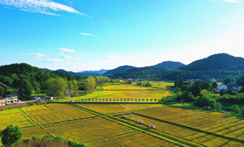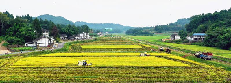 金秋时节,稻谷飘香。近日,南充市西充县优质(有机)粮油现代农业园内,10万亩优质水稻迎来收获季节,总产值约为5.5亿元。
