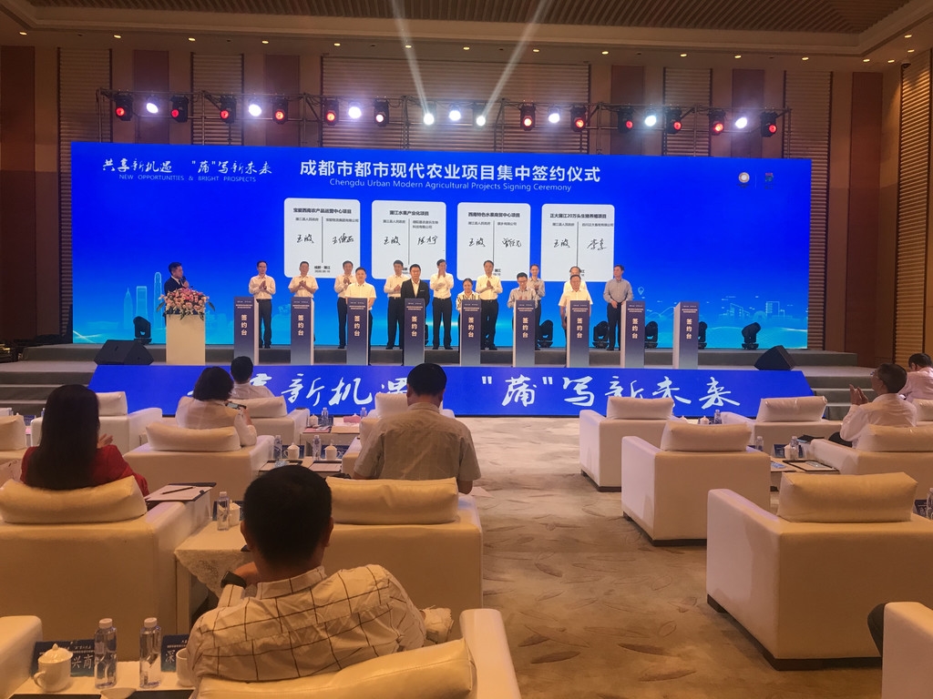 9月16日,成都市都市现代农业项目集中签约仪式在蒲江县举行。13个都市现代农业项目现场签约,总投资150.67亿元,涉及农商文旅体融合发展、特色镇、农产品物流、绿色种养殖等领域。