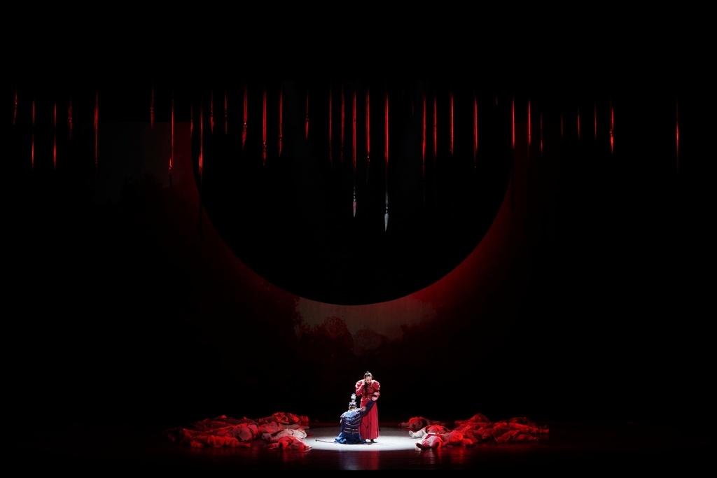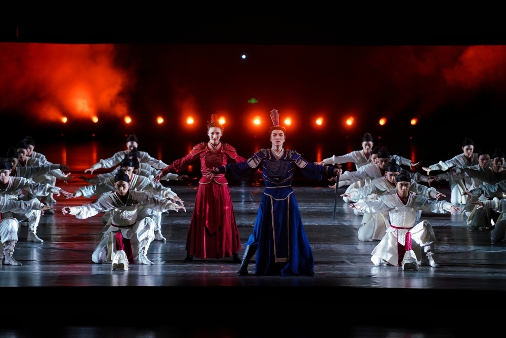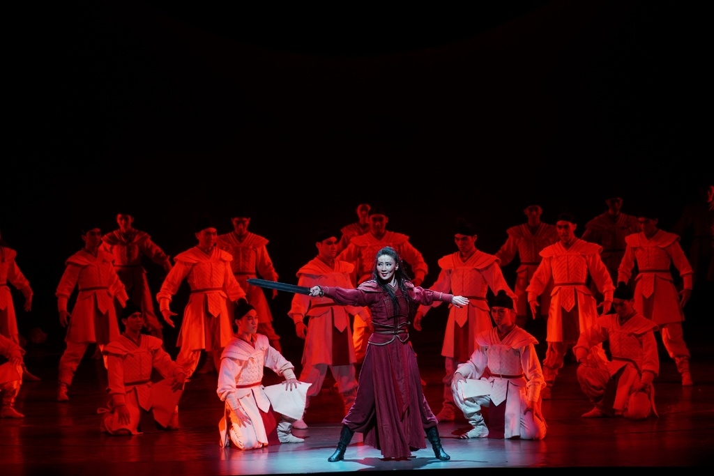 花木兰是中国古代的一位传奇女性,她替父从军、保家卫国的事迹,被大家尊敬和歌颂。而舞剧《花木兰》以“孝”“忠”“勇”“爱”为主线,刚柔并济地讲述花木兰从一位美丽的田园少女走向巾帼英雄的历程和蜕变。她打得了硬仗,却也像普通女孩一样爱美。她与伙伴并肩作战,勤学苦练,却又不得不面临战场上的生离死别。她与挚爱比翼双飞,但也遗憾地与其擦肩而过。这样一个性格丰富饱满花木兰,不时引来在场观众们的掌声、笑声和泪水。