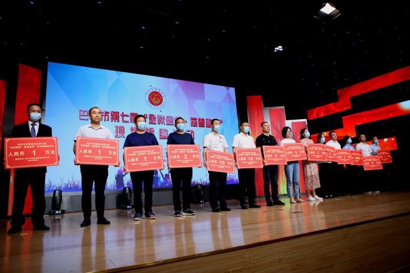 9月15日上午,在巴中市第七届“金秋圆梦·慈善助学”现场捐助活动现场,20余个爱心企业家、爱心单位和爱心人士上台举牌,共捐赠慈善助学款150多万元,将资助280名大学新生、35名高中新生。30余名学生代表现场获赠助学金。