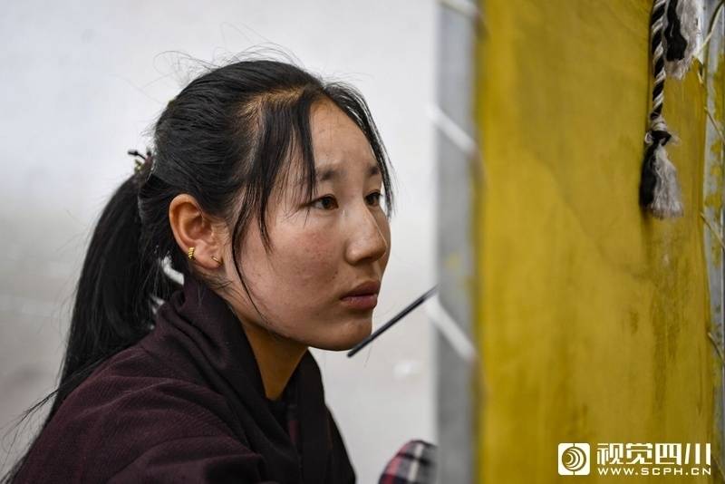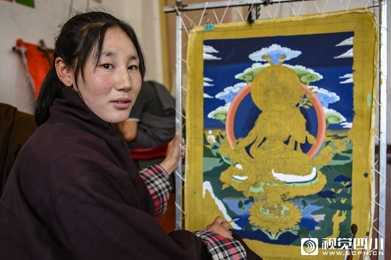 20岁的德吉卓玛正在绘制唐卡