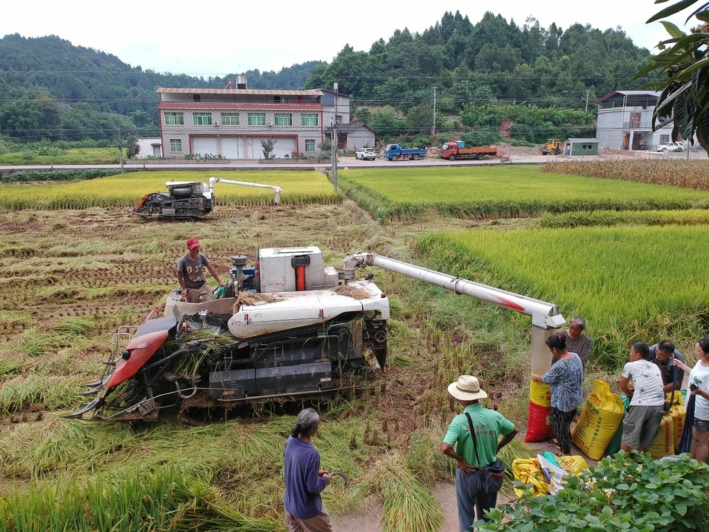 传统农业大县四川三台县属丘陵地区,平坝面积少,农田碎块化程度高,不适宜大型农机集中作业,为确保产粮季抢收保丰,三台县农业部门加大对小型特种收割机的协调力度,记者发现,一台台适合山区、丘陵地带作业的小型特种收割机在金色的稻田里来回穿梭,仅观桥镇一地就有40余台。