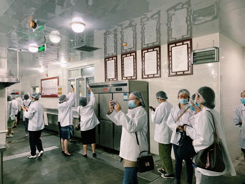 锦江区中小学、幼儿园的校(园)长参观田家炳中学食堂。