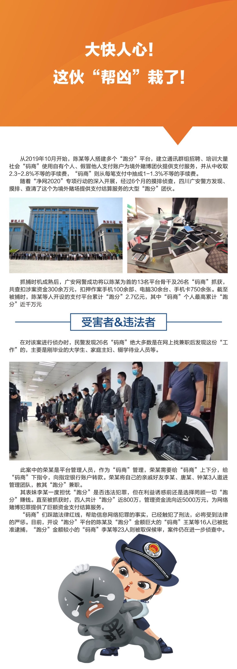 截至目前,民警通过集中抓捕共抓获以陈某为首的犯罪嫌疑人43名,现场缴获电脑30台、手机黑卡750张、手机70余部,扣押车辆4辆,追缴资金300余万。发现涉案银行卡300余张,涉及个人、涉及社会招聘码商近千余。