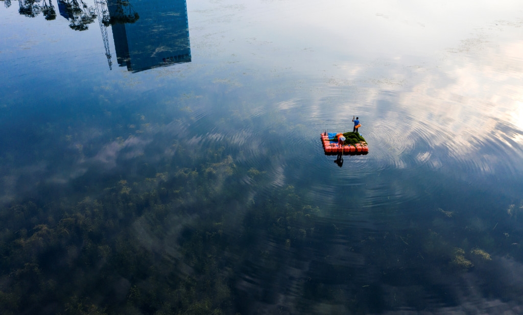 水质变好还不够,还要让优良水质可持续。泸州北控环保公司请来专业化运维团队,每天对公园进行运营和维护。其中就包括专门清理湖面的一帮”水上美容师“。