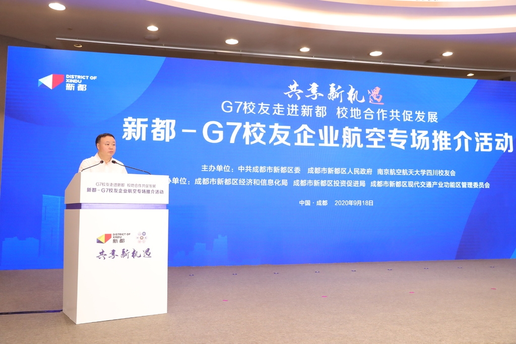 9月18日,成都市新都区携手南京航空航天大学四川校友会,联合举办新都-G7校友企业航空专场推介活动。新都区与中国航空学会等单位举行签约仪式。航空博览中心等6个项目签约落户新都,共计投资20亿元。