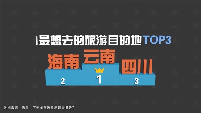 从目的地看,最受欢迎的Top3依次是:云南、海南、四川。