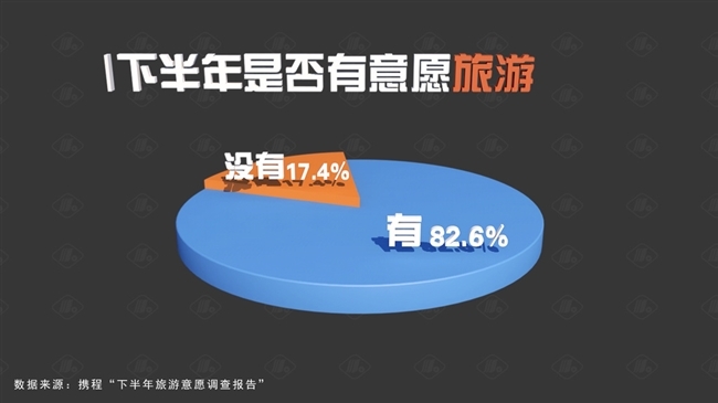 根据携程发布“下半年旅游意愿调查报告”,其中显示,今年下半年国人的旅游意愿正在大幅提升,消费者愿意花费更多时间和费用在旅游度假上,特别是最期待国内长途旅游。82.6%被调查者下半年都想出去玩。