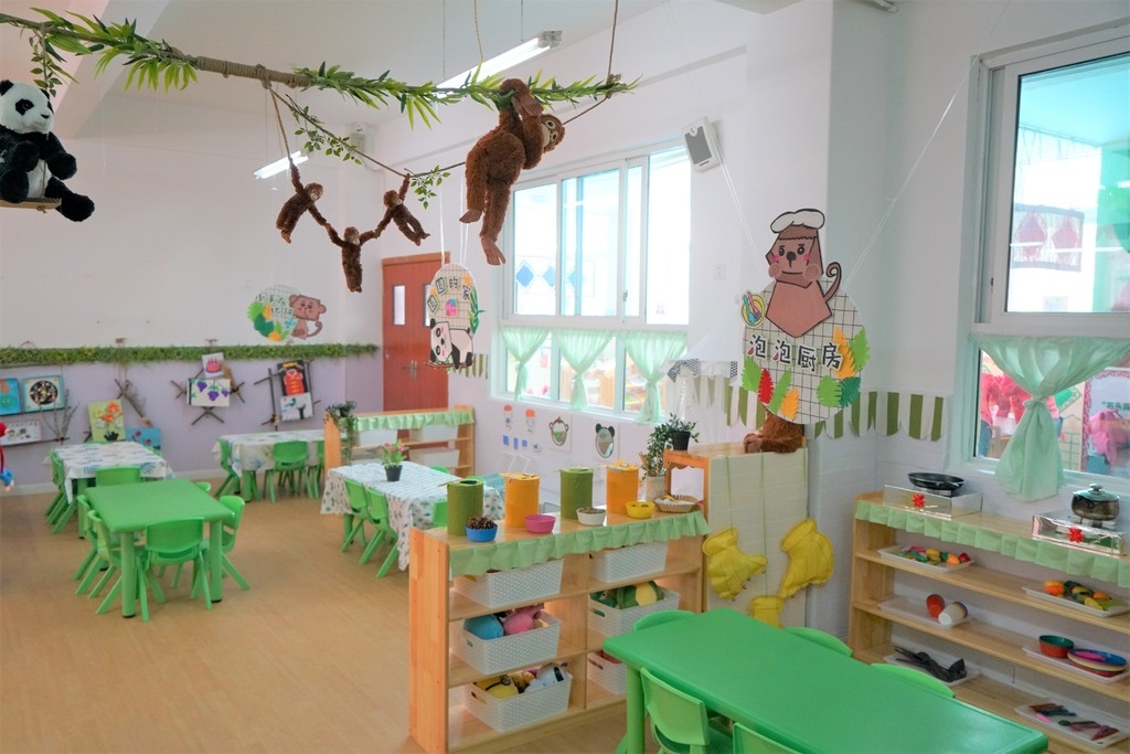 例如,九寨沟举世闻名,这里不仅有美丽的山水,也是世界生物圈保护区。当地小朋友最熟悉和喜爱的动物就是大熊猫和金丝猴,微光小队结合本地特色和儿童生活经验,与二幼教师、儿童商讨,共同创设以熊猫为主题的“萌宝乐园”,营造温馨、有趣,符合小班幼儿年龄特点的生活化场景。