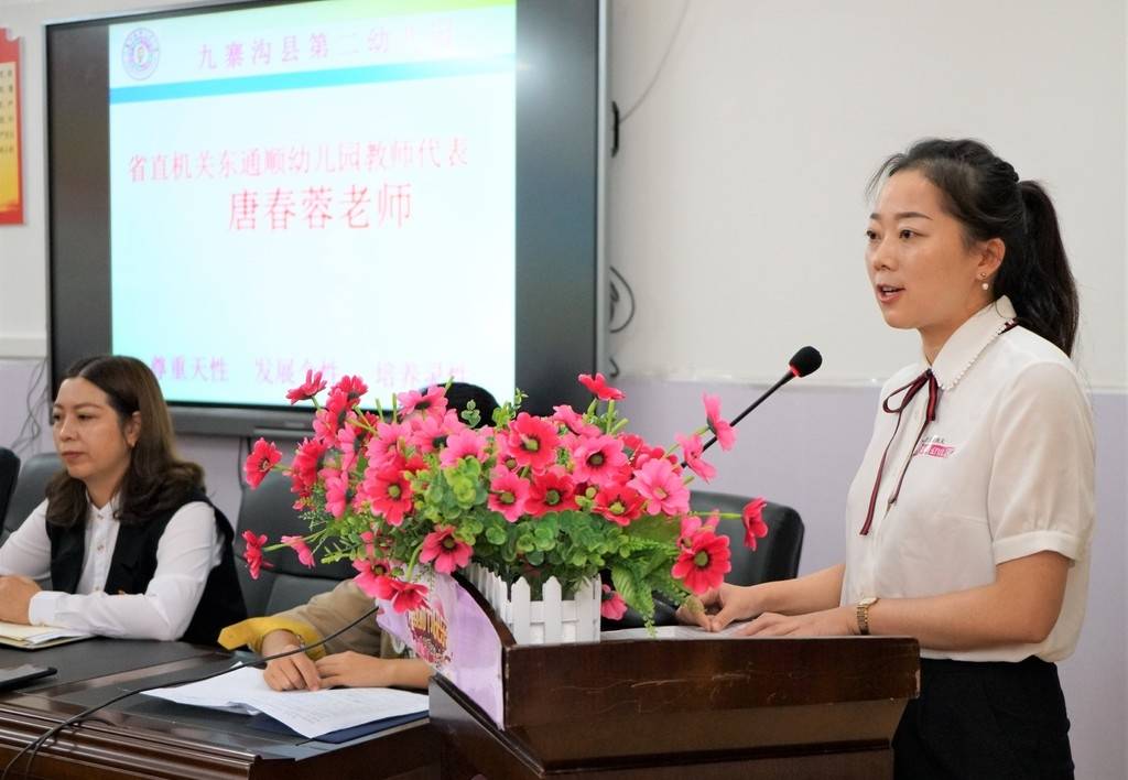 很高兴来到九寨沟,来到一幼,我深刻的感受到了你们工作的艰辛与不易,正是那份不忘初心的执着,才能默默怀揣着这份梦想,为九寨沟的幼教事业奉献和付出。作为幼教同行的我,在这里要向你们说一声,谢谢你们,你们辛苦了。