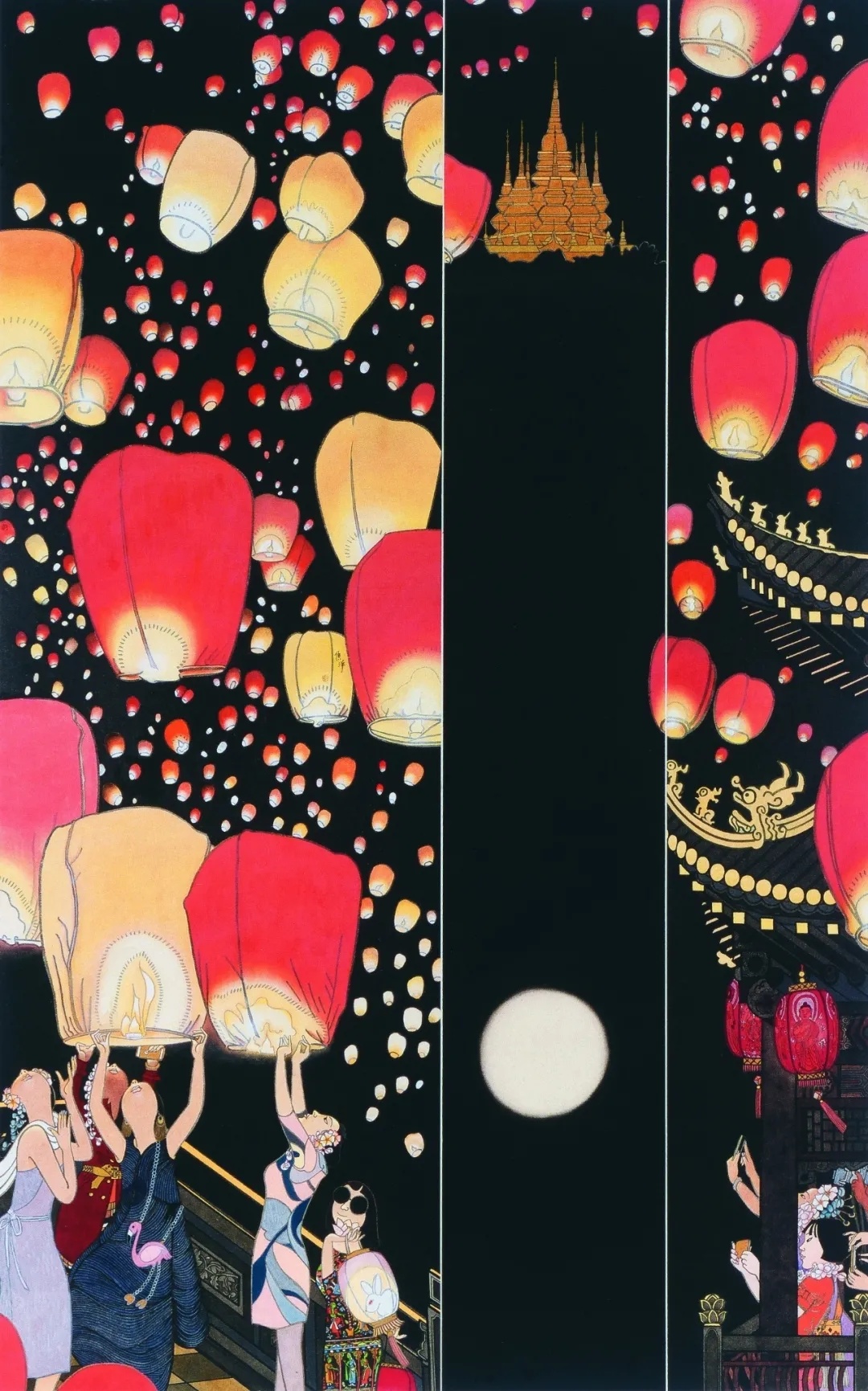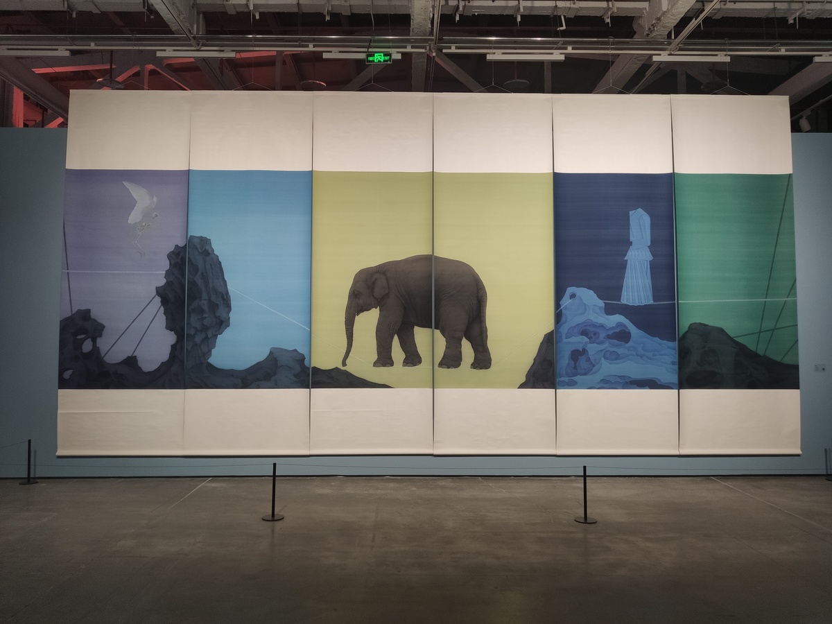 观众还可在何剑、焦洋、黄威、查美男等艺术家的作品中,洞见其与传统的视觉文化资源有独特的联系。“在语言的来源上,有的是工笔重彩,有的是宗教壁画,有的是民间绘画。不过,当这些视觉语言、造型手法、色彩表达与当代的题材与审美观念结合之后,工笔画的内涵与外延不断得到扩展,绽放出更为开阔的审美价值。”策展人何桂彦介绍。
