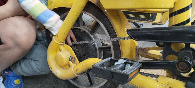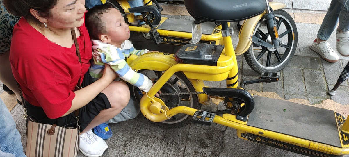 经事后了解,小孩儿是在玩耍时误将手指伸入共享单车内,又致使单车位置出现移动,将手指卡在了链条与后车架之间。