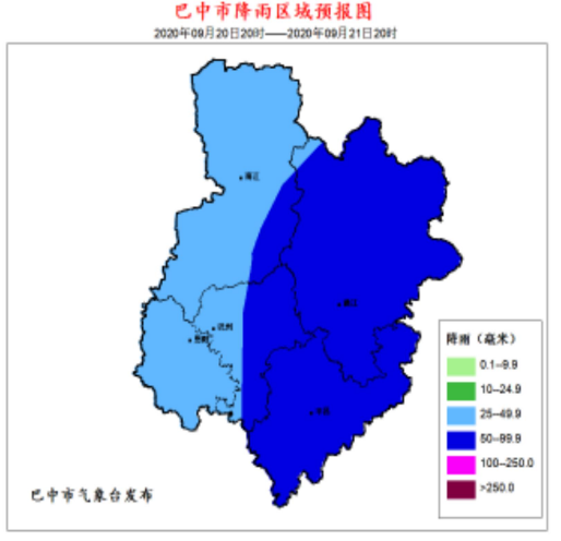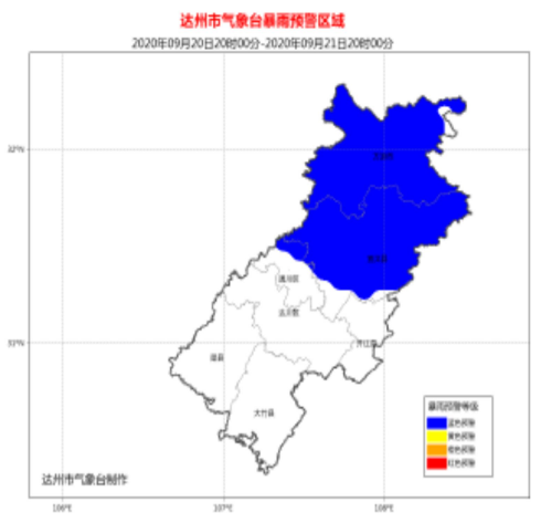 9月20日下午,四川巴中、达州两市发布暴雨蓝色预警,请大家注意防范。