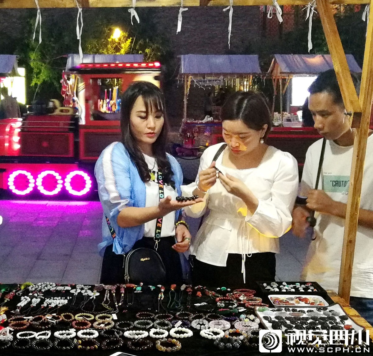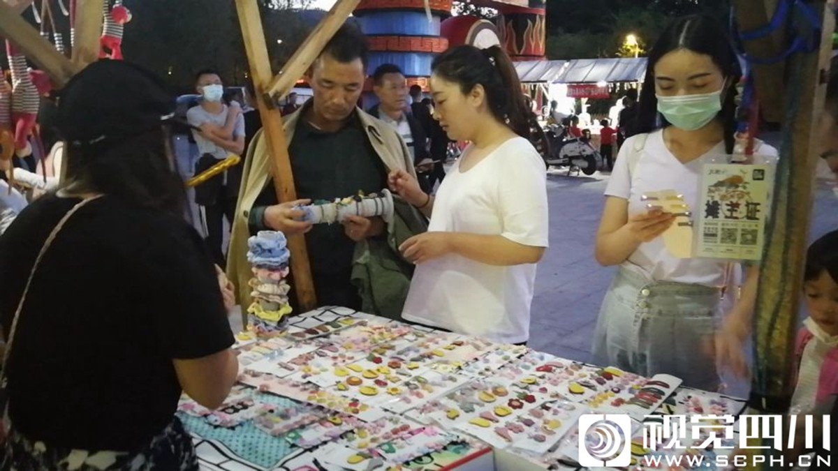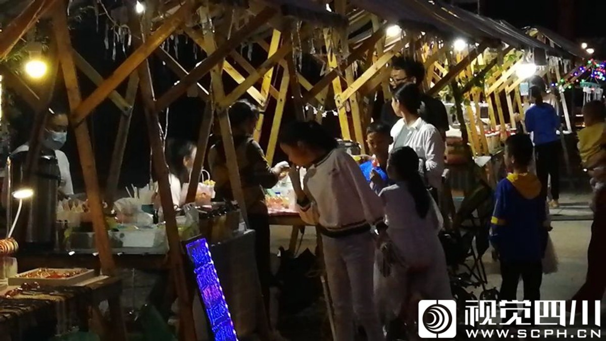 9月19日晚,西昌市火把广场“火把集市”吸引当地市民和游客前来选购富有创新和民族特色的商品。“火把集市”有50余家商家在现场销售不同的产品。