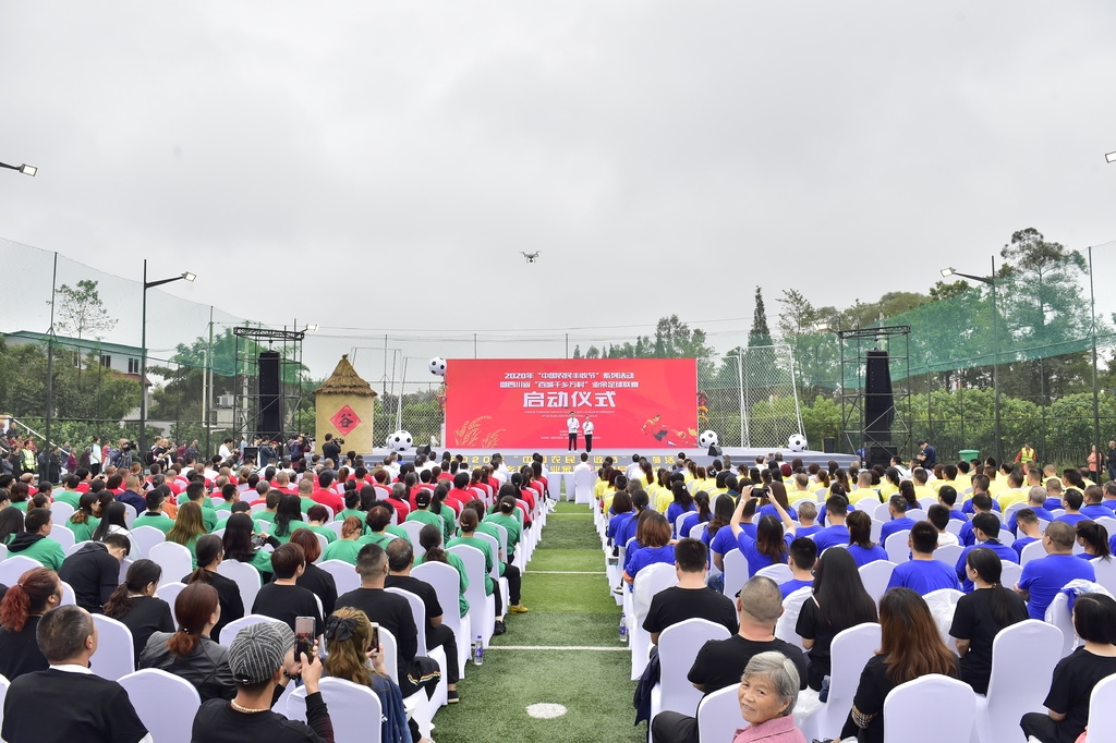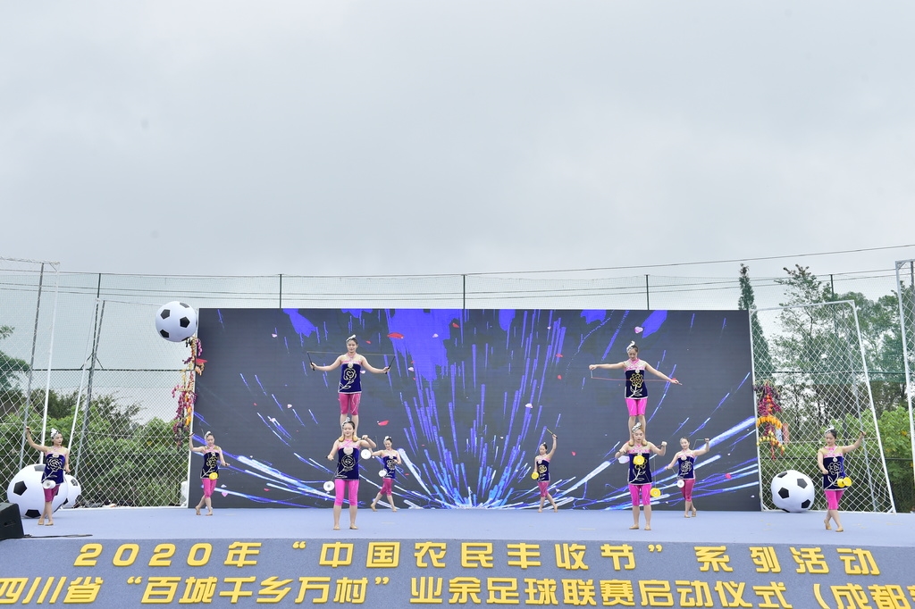 9月21日,2020年“中国农民丰收节”系列活动暨四川省“百城千乡万村”业余足球联赛启动仪式,在“成都足球第一村”、新都区斑竹园街道三河村开幕。