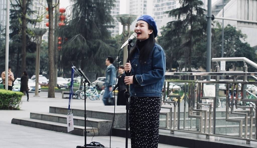 郭颂兰,成都第一批街头艺人,现为四川省歌舞剧院的音乐剧演员。曾在音乐剧《青城山下》《美神甘嫫阿妞》《我是川军》《熊猫秘境》《麦琪的礼物》中担任重要角色。作为一位声乐艺术硕士,她是少有的一位在街头演唱音乐剧的艺人。