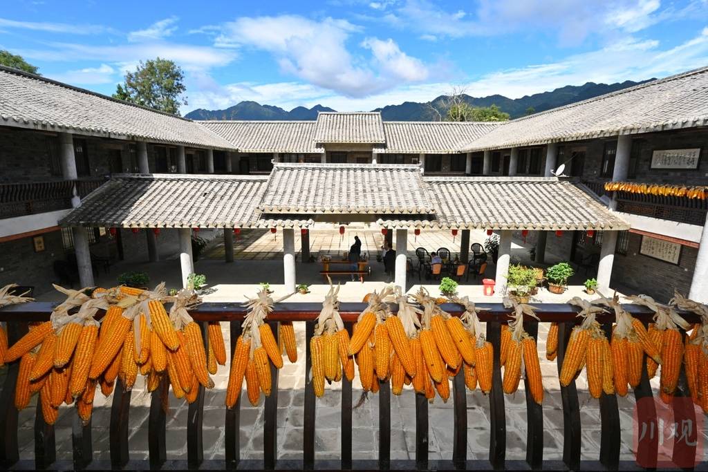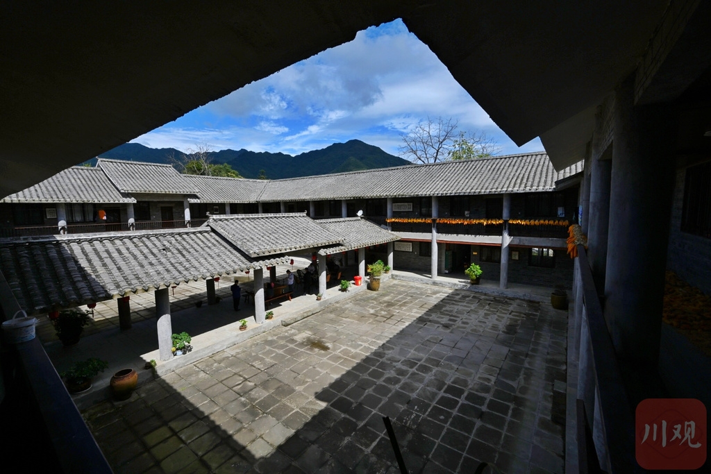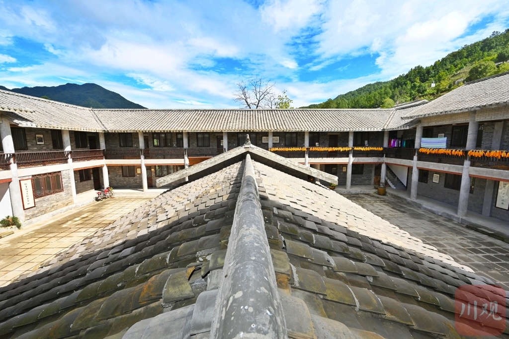 9月22日,广元市青川县白龙湖畔,走进青坪村“湖山竹苑”安置点,一座川北民居四合院展现在眼前:青砖楼房、吊脚楼,撮箕口,前庭后院,青瓦白墙,错落有致。