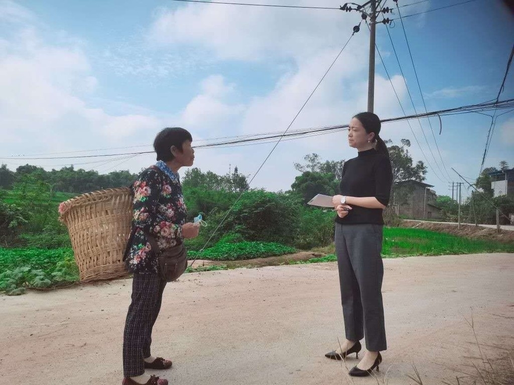 图为乡镇纪委入村回访,了解群众对办理事项满意度,黄敏 摄。