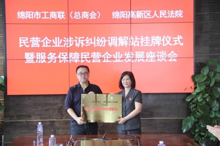 9月21日,绵阳市工商联(总商会)和绵阳高新区人民法院联合设立的绵阳首家“民营企业涉诉纠纷调解站”正式挂牌成立,并为首批入库调解员颁发了聘书。