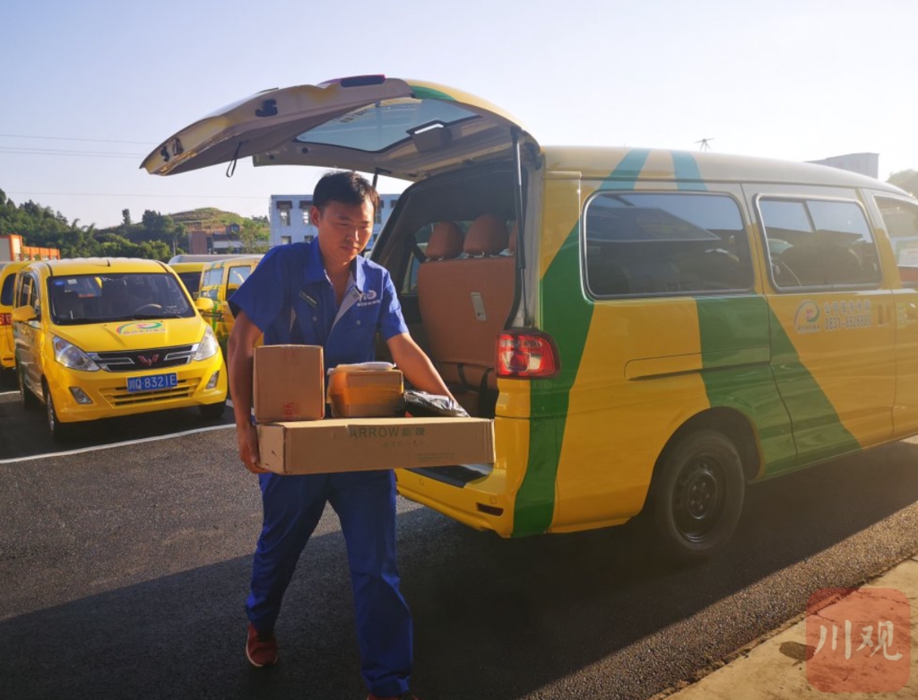 9月8日,宜宾市屏山县屏山镇蒋坝村“金通快邮驿站”前,一辆辆印有“四川乡村客运”logo的黄色便民小客车来来往往。司机郑修平从县城带回当日党报放在驿站,其他跑村组的“小黄车”司机顺便就把报纸带到了各村组。