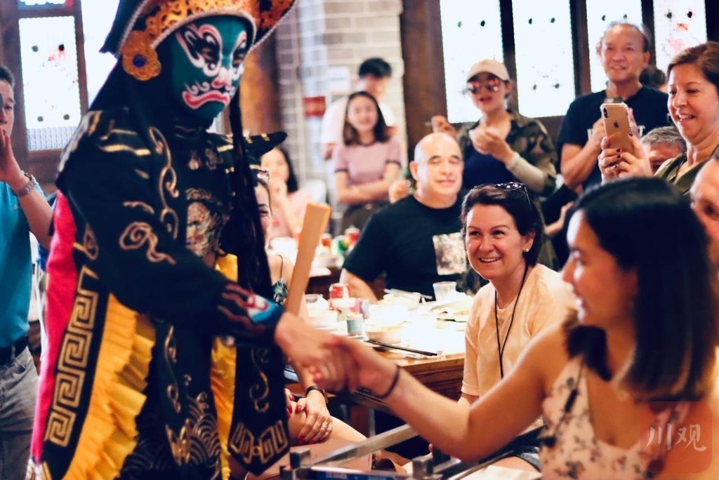 随着新冠肺炎疫情防控常态化,消费提振升级,四川的文旅市场满目生机。8月28日,载着外籍游客的旅游大巴驶至武侯祠锦里,这是今年新冠疫情发生后首个来川外籍游客旅行团。吃火锅、看川剧,阿尔巴尼亚小伙艾迪特说:“成都太迷人了!”。