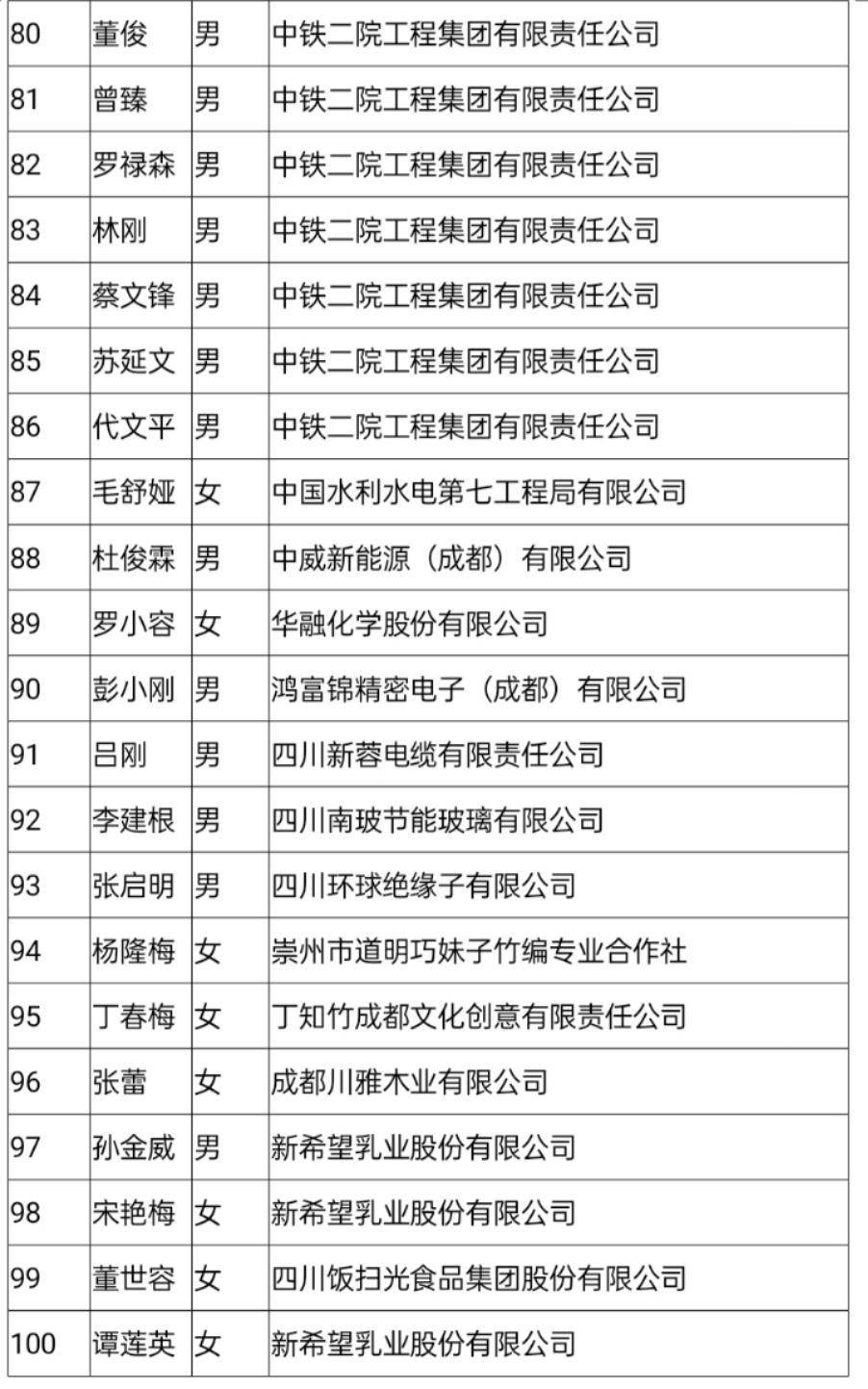 第三届成都市“百佳”职工创客明星候选名单公示如下: