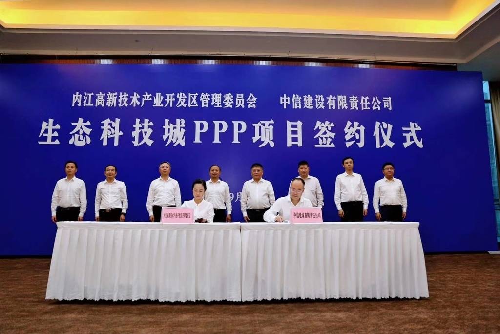 9月23日,内江高新区和中信建设有限责任公司签约生态科技城PPP项目。项目投资总额达76.32亿元,以“生态优先、民生先行、创新驱动、产城融合”为理念进行打造。