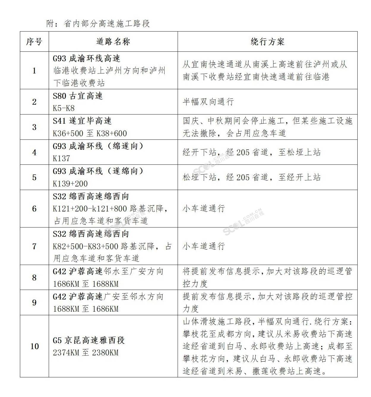 四川交警发布2020年“国庆、中秋”假期道路交通“两公布一提示”