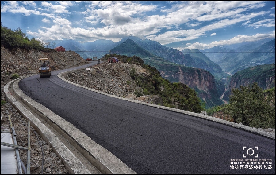 ●一条闪亮的柏油路穿越峻岭和峡谷直通云雾中的阿布洛哈村。 拍摄于2020年6月28日