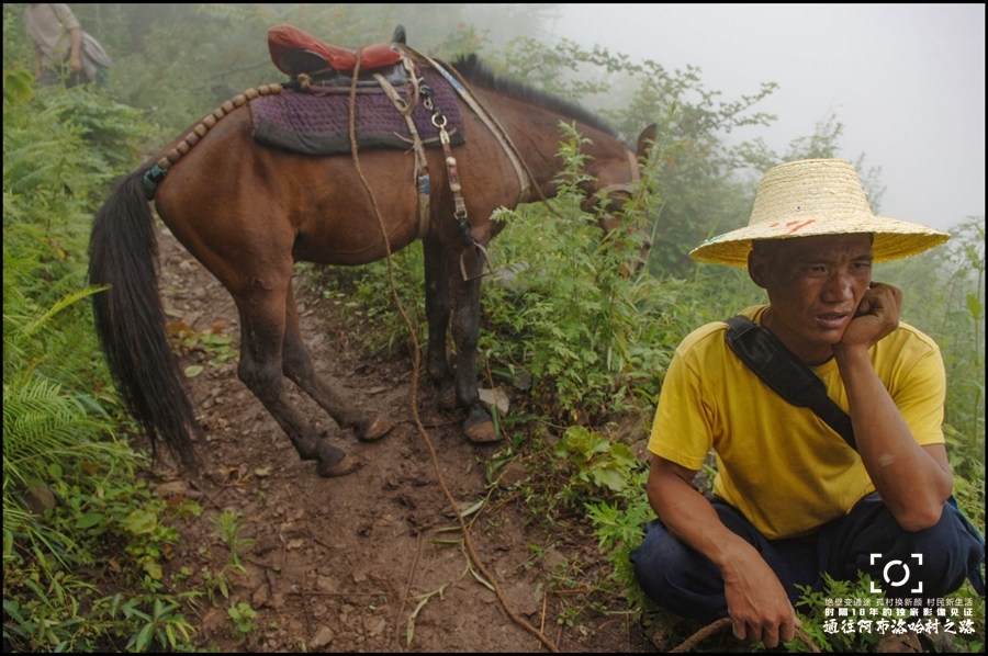 ●牵马从山路回家的且沙牛日望着山谷发愁。 拍摄于2007年7月12日