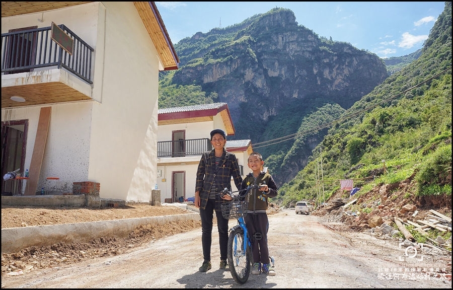 ●吉子么子作和小儿子且沙日呷在阿布洛哈村口。听说公路通到家门口,吉子么子作在外地工作大儿子专门给弟弟买了一辆自行车。拍摄于2020年6月24日